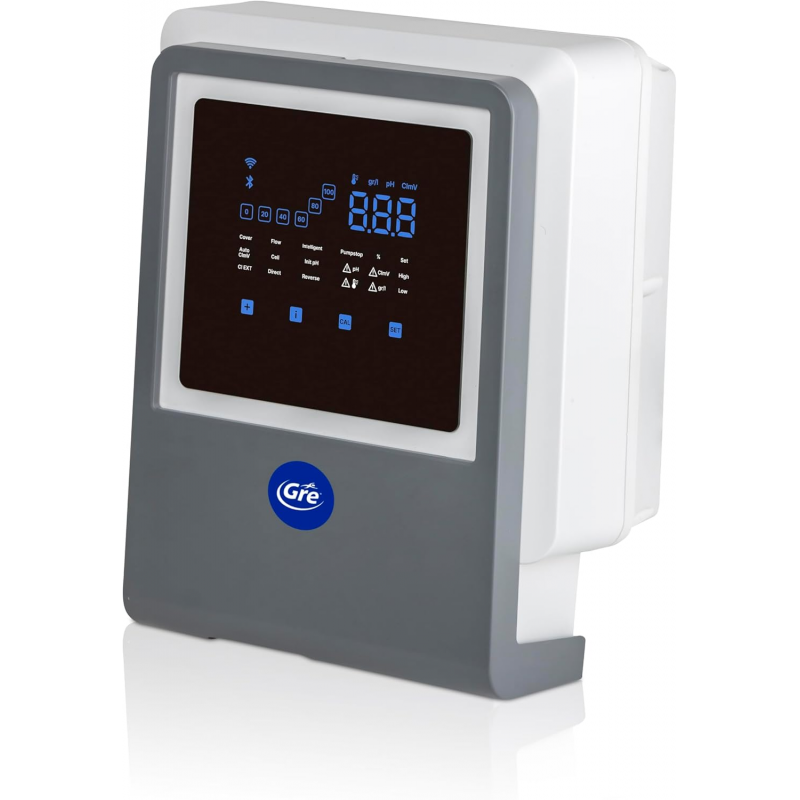 Con el Clorador Salino GRE SWC con pH y WiFi, podrás olvidarte del mantenimiento manual y disfrutar de un agua siempre perfecta. Una solución moderna, eficiente y cómoda para quienes buscan calidad y tecnología en el cuidado de su piscina.