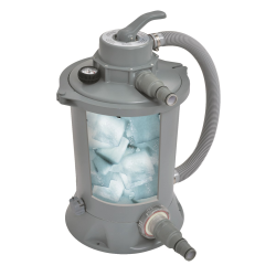 Puede usar arena de cuarzo, vidrio o Pureflow según sus necesidades. El vidrio ofrece una mayor durabilidad y mejor capacidad de filtración, mientras que la arena es una opción económica y efectiva.