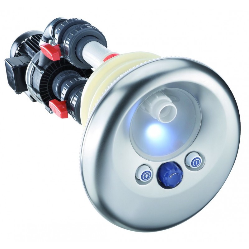 El BaduJet Vogue es un sistema de nado contracorriente potente que tiene una boquilla flexible y luces LED modernas para que nadar y recibir masajes sea muy cómodo. La bomba hace un chorro de agua fuerte que se puede usar para muchas cosas, como nadar sin tener que dar la vuelta, hacer burbujas y recibir masajes bajo el agua. La cubierta de acero inoxidable de buena calidad y la boquilla que se puede girar quedan muy bien en cualquier piscina.