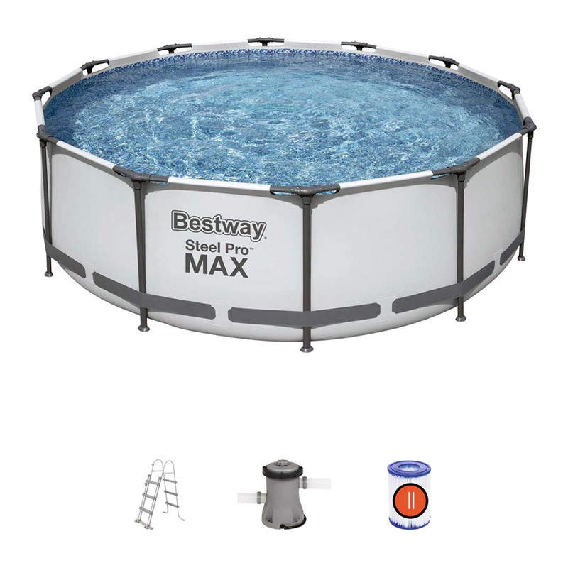 Piscinas tubulares desmontables elevadas marca Bestway modelo STEEL PRO MAX, con forma redonda, de fácil instalación, marcos de metal resistente a la corrosión y pared blanca de PVC de tres capas tecnología TRITECH.